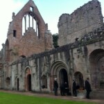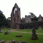 Dryburgh Abbey is a ruinous Abbey and is the burial place of Sir Walter Scott, near Melrose in Scotland.