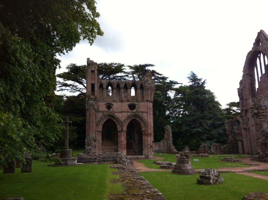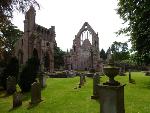 Dryburgh Abbey is a ruinous Abbey and is the burial place of Sir Walter Scott, near Melrose in Scotland.